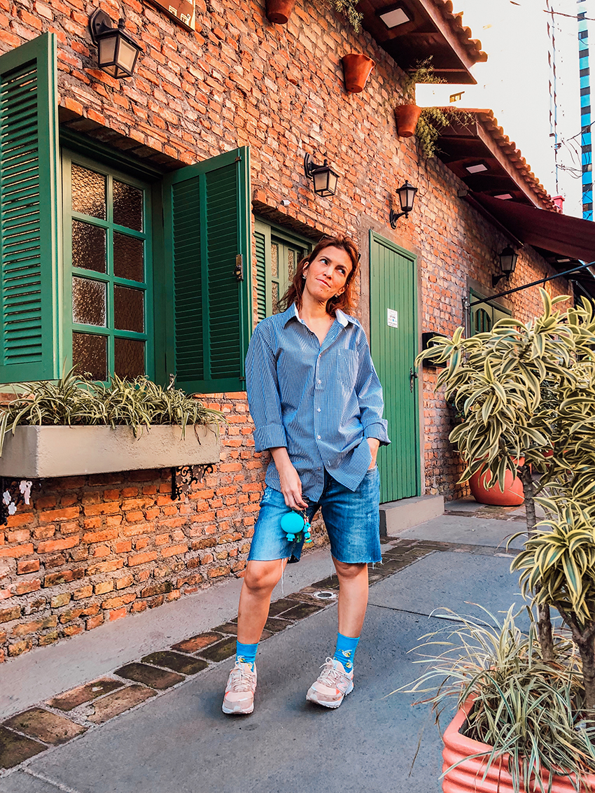 Depois seguimos caminhando, pois eu queria bater perna e pra fazer isso nada melhor do que tênis com bermuda. Camisa masculina ao invés de camiseta pra deixar mais "arrumadinho", meia colorida pra se destacar na multidão e uma vontade de conforto acima de tudo. A tarde caiu com o céu pink com laranja do jeito que eu gosto e fomos comprar as coisas pra fazer nosso pastel caseiro. Não adianta, quando chega final de semana é normal querer sair da alimentação óbvia e partir para os "lanches", haha.